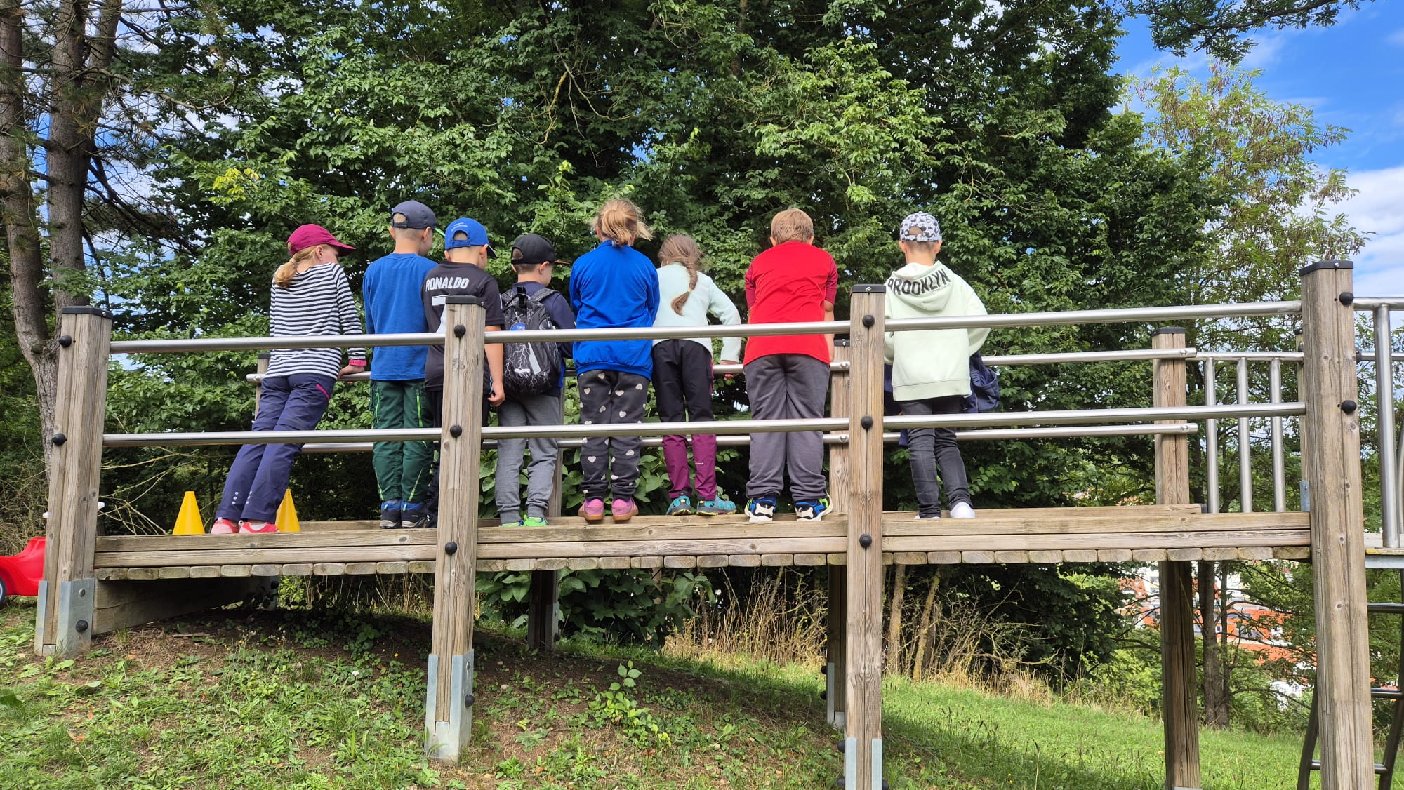 In drei Gruppen mit je 9 Kindern startete unsere Schatzsuche am SVA Sportheim. An verschiedenen Stationen, rund um den Aurain und dem Wasserfall, mussten unsere Kinder verschiedene Aufgaben, wie z.B. mit dem Bobby Car einen Parcours bewältigen, einen Ball in den Eimer am Ende der Seilbahnfahrt auf dem Wasserfallspielplatz treffen, Koordinationsspiele... Nach Lösung der Aufgabe, gab es an jeder Station ein Teil der Schatzkarte.